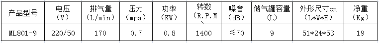 8.本產品為臺冠ML801-9無油空氣壓縮機,嚴禁加油潤滑。