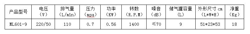 8.本產(chǎn)品為臺(tái)冠ML601-9無油空氣壓縮機(jī),嚴(yán)禁加油潤(rùn)滑。