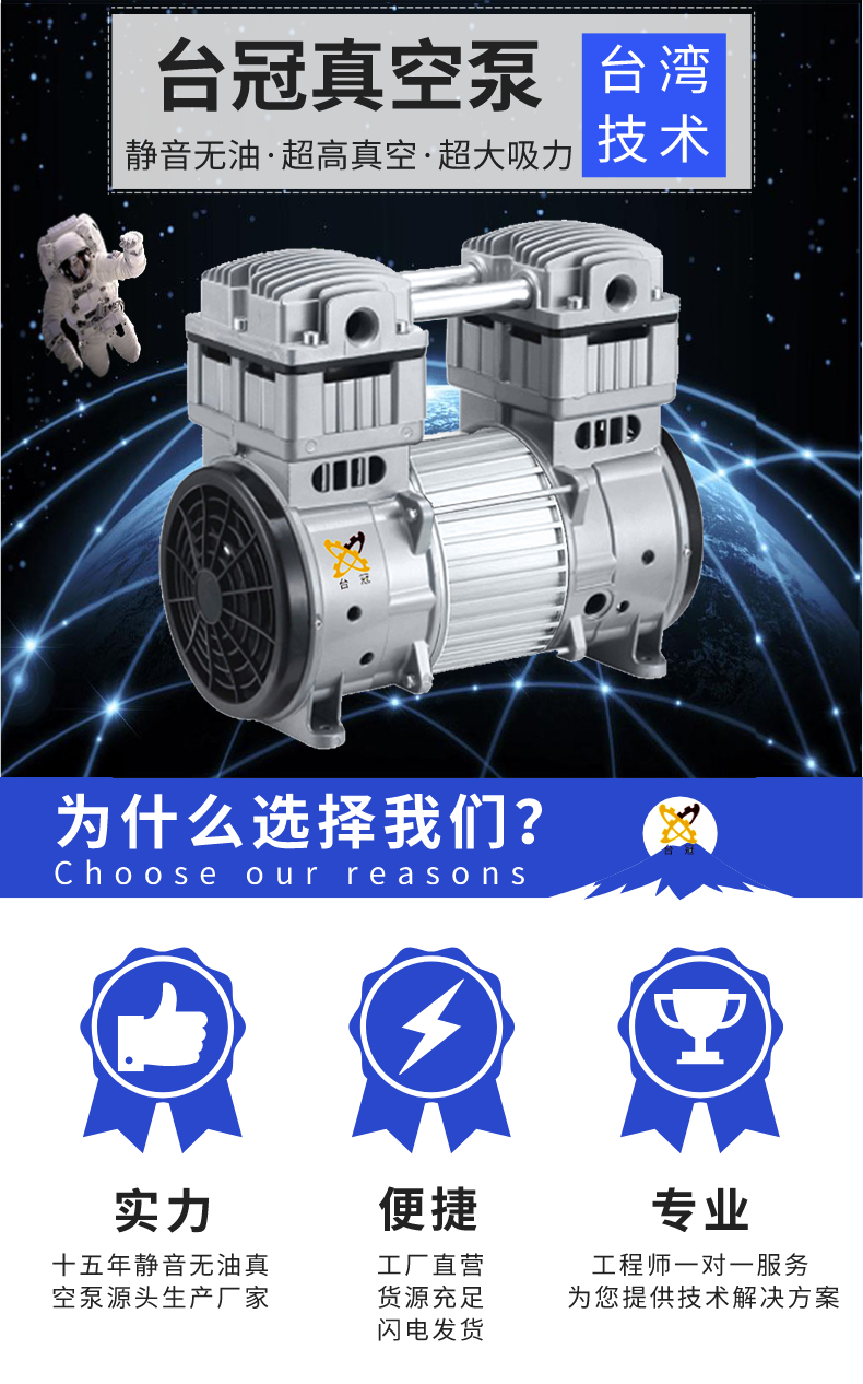臺冠JP-240V無油真空泵可廣泛應(yīng)用于醫(yī)療設(shè)備、汽車工業(yè)、自動控制、印刷機(jī)械、包裝機(jī)械、食品保鮮、水產(chǎn)養(yǎng)殖、水凈化處理、分析儀器、美容保健、廣告制作、設(shè)備維修、生物制藥、通訊電子、石油化工、環(huán)境檢測系統(tǒng)、高原地區(qū)制氧等領(lǐng)域;是工業(yè)化社會需要純凈和環(huán)保真空空間者的選擇。