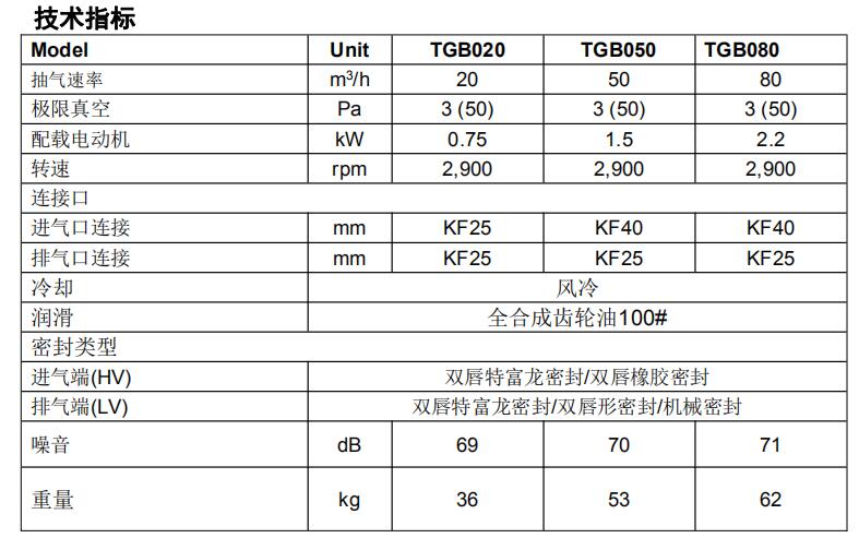 5.TGB 干式復合螺桿真空泵是由兩根平行的螺桿轉子與泵體內壁形成多個密封空 間,轉子與轉子之間、轉子與泵體內壁之間均保持極小的間隙(但不接觸、無摩擦), 在反向同步齒輪驅動下, 氣體持續由進氣口向排氣口傳送的真空泵。由于兩根轉子 和泵體相互之間均無摩擦,故無需潤滑,可保持泵腔及排氣干凈。螺桿真空泵中,氣體被持續推進,通道短,效率高;排氣口低于螺桿位置,排 液能力超強,易清洗; 無中間隔板(爪式真空泵和多級羅茨真空泵有),排氣排液通暢,維修保養簡單。